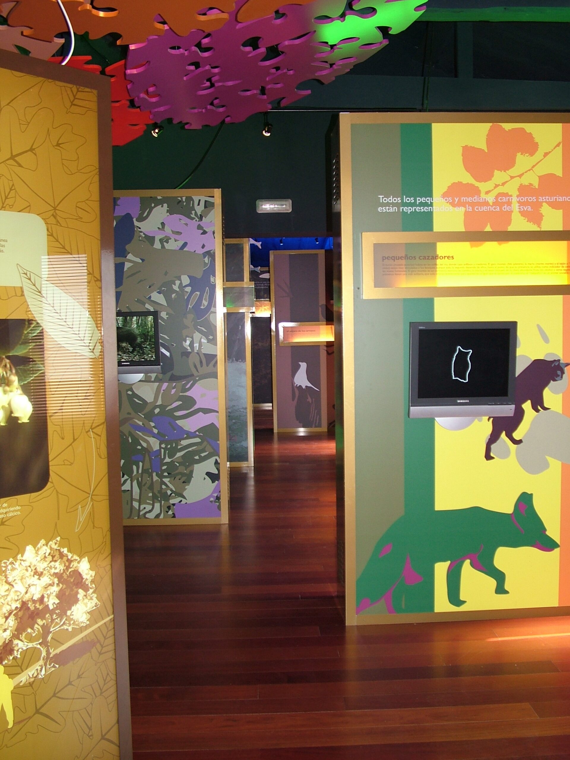 En la planta segunda, unos monitores, nos permiten conocer todo el ecosistema del río Esva y su ribera. Además de la flora variada, podemos contemplar tritones, anguilas, truchas, salmones, lagartos y diferentes animales que conviven en su bosque e inmediaciones.